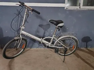 Bicicleta plegable easy bike 3 de color plateado, ideal para transportarla y guardarla fácilmente. Perfecto estado. - Cuadro de aluminio. - Portabultos trasero. -Cambio de velocidades.