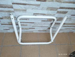 Soporte de pared plegable diseñado para bicicletas. Su estructura es de metal blanco. - Plegable para ahorrar espacio. - Montaje en pared. - Necesita pintar