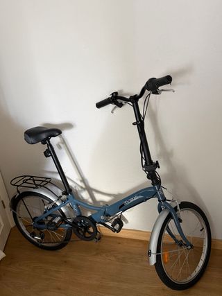 Bicicleta plegable de la marca B-Pro, ideal para desplazamientos urbanos y fácil de almacenar. - Color azul. - Ruedas de 20 pulgadas. - Sillín ajustable. - Portaequipajes trasero. - Guardabarros delanteros y traseros.