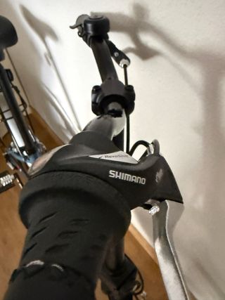 A estrenar! Cuadro aluminio 7005. Cambio 6vel., Mando de cambio y Piñón Shimano. Frenos V-Brake aluminio. Ruedas 24". Llantas aluminio. Manillar y Pedales plegables. Guardabarros. Porta bultos. Pata de cabra. Timbre. Sillín Confort. Puños y Sillín símil cuero. No incluye Candado. Dimensiones plegada 85x70x35 cm. Dispongo de 2 unidades a estrenar. En tienda salen por 259'98 euros/unidad. Agotadas actualmente . Precio unitario.