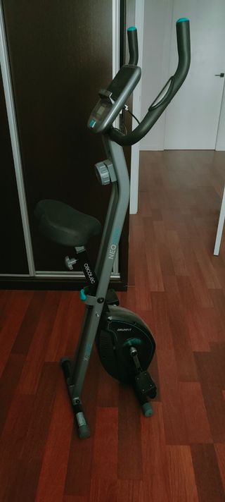 Drumfit X-Bike 3000 Neo Bicicleta estática plegable. Pantalla LCD. Volante de inercia 3 Kg. Resistencia magnética variable. Sillín confort. Soporte para tablet y ruedas de transporte. No tiene ni un año y apenas se ha usado.