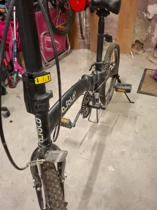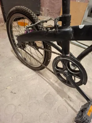 Bicicleta plegable en color negro. - Rueda trasera con cubierta. - Cadena y plato visibles. - Pedales de plástico. Usada 2 veces hace años