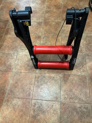 Rodillo de entrenamiento para bicicletas. Alguna señal de uso pero funciona perfectamente. Ideal para calentar y los días de lluvia. Fácil de usar y no requiere de mantenimiento. Características: - Sistema patentado de balanceo - Libertad de movimiento en el rodillo que acerca a las sensaciones naturales de la carretera - Rodillo con base resistente para rodar estable - Plegable a 80 cm, fácil de llevar - Sistema de rodillos oscilante: permite al ciclista permanecer sobre los rodillos más fácilmente