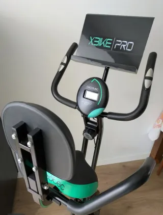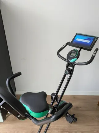 Bicicleta estática en excelente estado, utilizada solo una vez. - Diseño plegable para fácil almacenamiento. - Asiento cómodo con respaldo. - Pantalla digital para seguimiento de ejercicio.