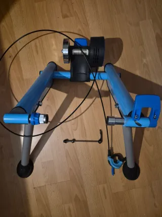 Rodillo de entrenamiento Tacx en color azul. - Estructura robusta y plegable. - Incluye eje pasante. Apenas usado.