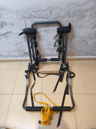 Portabicicletas para portón trasero de coche. Permite transportar bicicletas de forma segura. - Carga 3 bicicletas maximo 45kg. - Estructura metálica de acero - Correas de sujeción incluidas. - Diseño plegable para fácil almacenamiento. - Modelo mejor adaptado por para modelos de coches wagon o rancheras. Solo se admite pago por bizum No envios