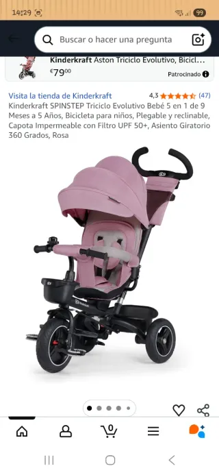 Triciclo evolutivo Kinderkraft SPINSTEP en color rosa. - Diseñado para bebés de 9 meses a 5 años. - Funciona como bicicleta para niños. - Plegable y reclinable. - Capota impermeable con filtro UPF 50+. - Asiento giratorio 360 grados. Usado so 2 o 3 veces . PRECIO NO NEGOCIABLE