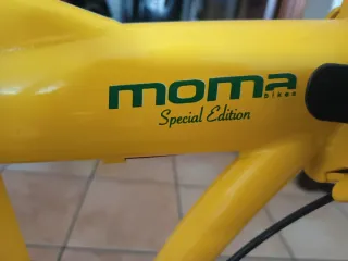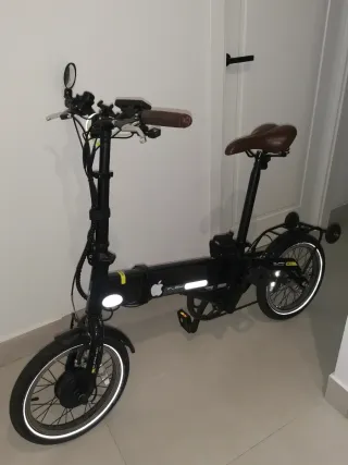 Bicicleta eléctrica plegable de la marca Moma. - Color negro. - Sillín marrón. - Ruedas de 20 pulgadas. - Portaequipajes trasero. - Cambio Shimano - poco uso, buena bicicleta, muy cómoda y fácil de manejar, batería 16ah con bastante autonomía con pedaleo asistido