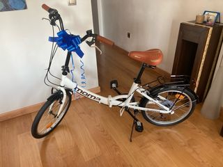 Buen estado. Talla adulto. Marca: BH. MODELO: IBIZA. Cómoda y fiable. Cuadro y llantas en aluminio de 20 pulgadas con piñón de cambio de 6 velocidades. Fácil de plegar, y con seguros en los cierres. IDEAL para uso en metro, tren, e incluso introducir en el maletero. Mecánica de frenos recién revisada. Regalo timbre, luces delantera y trasera.