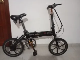 Bicicleta eléctrica ENGUIE PRO 2.0 en color negro. Es un modelo plegable, ideal para transportar y guardar. - Ruedas anchas y resistentes. - Sillín cómodo. - Portaequipajes trasero. Se vende porque ya no le doy uso, solo esta deslimitada, no la puedo limitar nose porque. Se vende con las dos camaras antipinchazos puestas y liquido antiponchazo echado ya, va de serie completamente no tiene ninguna modificacion. Tiene algunos rozetones pero nada importante. Se vende con alarma incluida con mando, dos llaves uno de repuesto y la que se usa en la bici. Las luces van perfectamente. Precio algo negociable.