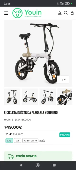 Bicicleta Eléctrica Youin Rio 250W