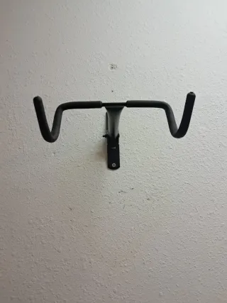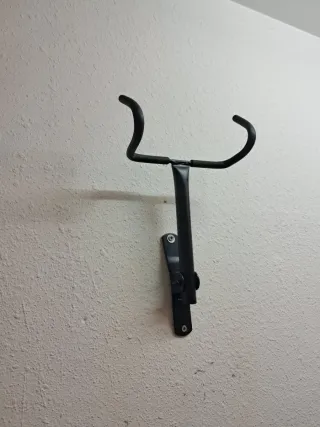 Soporte de pared plegable para bicicletas. Permite almacenar tu bicicleta de forma segura y ahorrar espacio. - Fabricado en metal negro. - Diseño plegable para fácil almacenamiento. - Incluye tornillería para montaje.