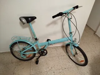 Bicicleta plegable de color azul. - Ruedas de 20 pulgadas. - Sillín negro con detalles verdes. - Portabultos trasero. En perfectas condiciones, para más info pedir fotos.