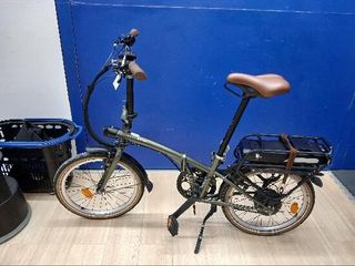 Bicicleta eléctrica BTWIN en buenas condiciones, ideal para desplazamientos urbanos. - Modelo plegable para fácil transporte y almacenamiento. - Color negro.