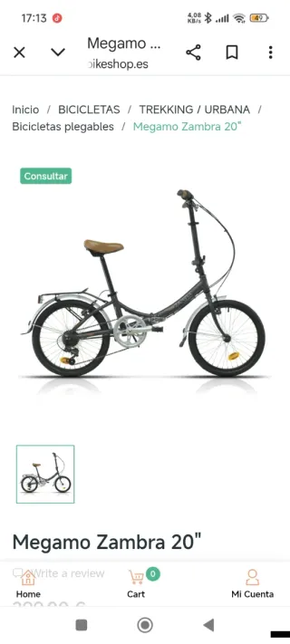 Bicicleta plegable Megamo Zambra con ruedas de 20 pulgadas. - Diseño compacto y fácil de transportar. - Ideal para desplazamientos urbanos. No tiene ni 5 kms,muy bien estado,la vendo porque me han regalado una de montaña,incluye casco,2 antirrobos y funda de sillín de gel,sillín y guardamanos de cuero,la mejor bici urban de iniciacion,No hago envíos,recoger en Sevilla,PvP con todos los extras 425,oportunidad solo 220