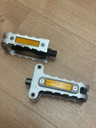 Par de pedales de plata para Brompton. Izquierdo plegable y derecho normal. Muy poco uso. Sin holgura ni defectos. Mínimas marcas del uso. Se pueden ver y probar sin compromiso. Se hacen envíos. Para más información contactar por mensaje. Bici brompton plegable pedales black