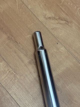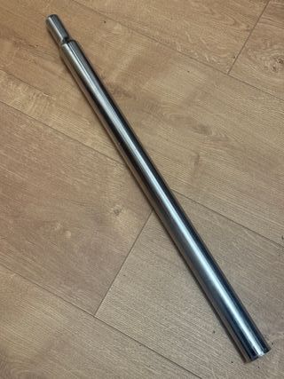 Tija de sillín para bicicleta Brompton. Estándar, longitud 54cm. En perfecto estado, sin golpes. Se puede ver y probar sin compromiso. Se hacen envíos. Para más información contactar por mensaje. Tija sillín brompton bici plegable original - Modelo estándar. - Longitud de 54 cm. - Acabado en color plata.