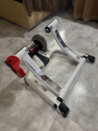 Rodillo de entrenamiento para bicicletas Elite Qubo Fluid. - Diseño en color blanco y rojo. - Estructura robusta y plegable. - Incluye resistencia fluida.
