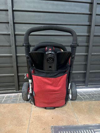 Triciclo Molto Urban Trole Basic en color negro y rojo. _ Edad mínima 10 meses _ 180 rotativo _ Asiento reclinable _ Cubeta porta objetos _ cinturones de seguridad con clip _ Reposa pies _ frenos delanteros y traseros _ Dual systen - Estructura robusta. - Capota protectora. - Asiento acolchado.