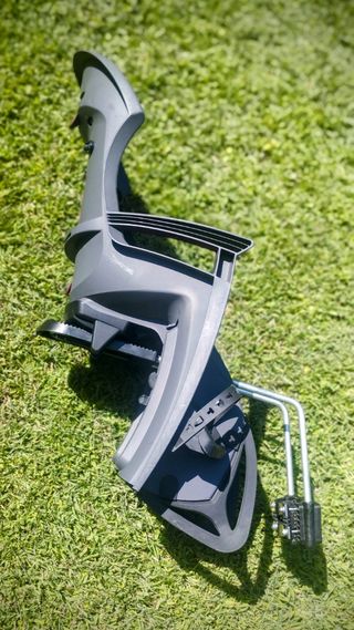 usada en dos ocasiones Tiene cinturón ajustable de 5 puntos Los apoyos de los pies son ajustables en altura Ángulo de asiento ajustable (hasta 20 grados) Cómoda y segura además de reclinable El respaldo se recoge/reclina para ocupar menos espacio Abrazadera de liberación rápida, conveniente para todas las formas de marco habituales