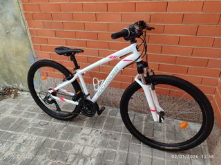 ¡Vendo bici ideal para salidas, caminos y uso diario! Modelo: Rockrider ST 100 (Aluminio, talla aprox. mujer) Rueda: 27,5″ – perfecta para comodidad y control Estado: Muy buena condición – cuidada, lista para rodar hoy mismo Color: Blanco con detalles modernos ✨ Por qué te encantará Cuadro ligero de aluminio (fácil de manejar y transportar) Frenos y cambios funcionando bien Perfecta para rutas, montaña ligera o paseos por ciudad Más económica que comprar nueva y con fiabilidad Decathlon 🔧 Incluye: Revisión reciente y puesta a punto Neumáticos con buen dibujo Sillín confortable 📍 Recogida en mano en Poblenou, Barcelona