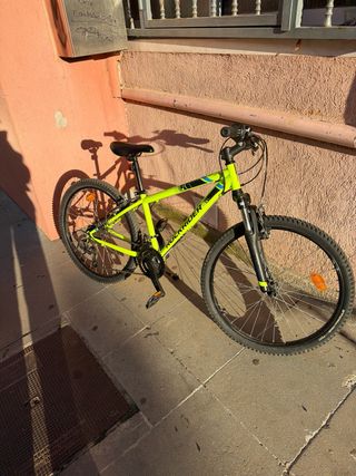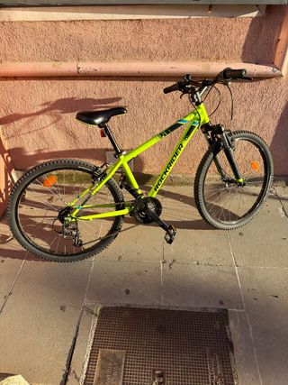 Bicicleta Rockrider ST 100 en buen estado. - Color verde lima. - Ruedas de 27.5 pulgadas. - Frenos de disco. - Suspensión delantera.