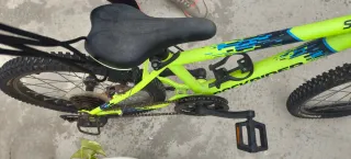 Bicicleta Rockrider ST 500 de 24 pulgadas. - Color amarillo neón. - Cuadro de aluminio. - Suspensión delantera. - Frenos de disco. Apenas un par de paseos con ella. Tiene como extra la pata y botellero