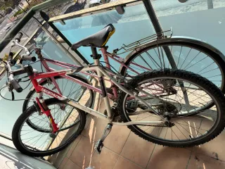 Dos bicicletas de Decathlon y de estilo vintage, ideales para coleccionistas o para darles una segunda vida. - Bicicleta roja con detalles en negro y amarillo. Rockrider decathlon - Bicicleta rosa con guardabarros plateado. Marca BH Gacela retro. Algunos signos de desgaste por el tiempo y alguna rueda pinchada.