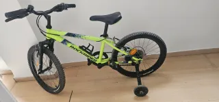 Bicicleta de niño de la marca Rockrider, ideal para edades de 5 a 9 años. Su color verde lima la hace muy visible. Se vende por que a mi hijo le viene pequeña Esta en perfecto estado - Ruedines incluidos. - Diseño deportivo. - Con 6 tipos de cambio