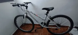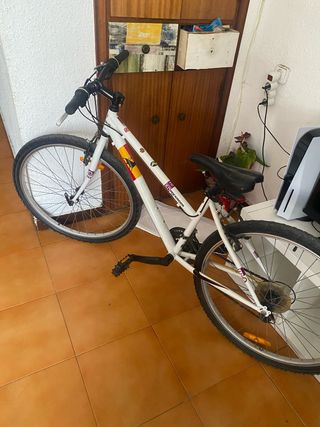 Bicicleta Rockrider 100 en buen estado, perfecta para empezar en MTB o moverte por la ciudad. Es cómoda, ligera y fácil de manejar. Tiene suspensión delantera, cambios en buen funcionamiento y ruedas en buen estado. Lista para usar, sin necesidad de hacerle nada. Se vende por no usar. - Cuadro de aluminio. - Suspensión delantera. - Frenos de disco. - Ruedas de 27,5 pulgadas.