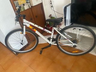 Bicicleta de montaña Rockrider en color blanco. Ideal para iniciarse en el ciclismo. - Cuadro de aluminio. - Frenos de disco. - Suspensión delantera. Rockirder btwin 8.0 200€ no negocio.