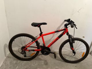 Vendo bicicleta de montaña infantil Rockrider EXPL 500 24" Kids MTB, ideal para niños y niñas de 9 a 12 años (ruedas de 24”). Comprada en diciembre de 2023 y utilizada únicamente para paseos ocasionales. Siempre guardada en interior, por lo que está en muy buen estado. Color amarillo, ligera y muy cómoda para empezar con la MTB. Extras incluidos: Caballete Portabotellas Guardabarros (se pueden incluir si el comprador los quiere) Si necesitas más fotos o información, escríbeme sin problema. La vendemos porque a se ha quedado pequeña.