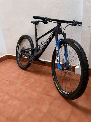 Bici Scott Spark RC carbono doble suspension Talla M como nueva. - Ruedas speedsix de carbono muy ligeras - Manillar Syncros integrado de carbono - Bielas XX1 Eagle de Carbono - Horquilla RockShox SID SL Ultimate - Cambio electrónico SRAM GX AXS Eagle 12 - Tija telescópica Divine SL - Sillín Specialized Evo - Neumáticos Pirelli Scorpion RC Tubeless Ready - Frenos Shimano XT (nuevos) - Bujes DT Swiss 240s (sonido espectacular) - Potenciometro Sigeyi como nuevo (opcional) - Amortiguador trasero RockShox SID Ultimate. Es un avión!🚀 La bici está de capricho y tiene muy poco uso, mejor verla y probarla. Se vende por no poder usar