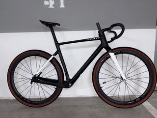 Bicicleta Scott Scale Gravel talla M con mejoras. Nueva. Posición de montaña en una gravel súper cómoda. Cambio SRAM electrónico con mandos Blips un capricho. 2750,00€ con Ruedas. - Cuadro de carbono con horquilla rígida, manillar y tija de Carbono. Entrego los de serie de aluminio. - Ruedas ligeras a la Carta de 1300gr. - Frenos Shimano *Posibilidad de vender sin ruedas!!