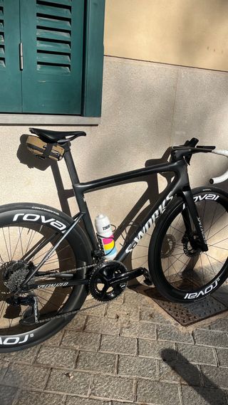 Bicicleta de carretera Specialized S-Works en color negro. Un modelo de alto rendimiento. - Cuadro S-Works. - Ruedas mavic rsis -trasmision ultegra 2x11. platos y bielas Qrings Manillar ritchey