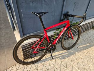 Bicicleta de carretera Specialized S-Works en color rojo. - Cuadro de carbono. - Ruedas de perfil. - Componentes de alta gama.