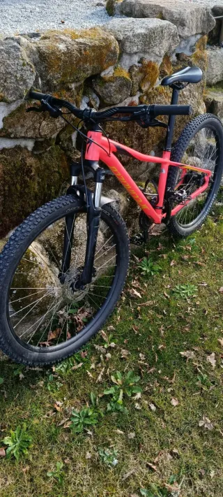 Bicicleta Specialized Pitch en color coral ideal para mujer. Diseñada para disfrutar del ciclismo. Año 2018. Talla S - Cuadro de aluminio. - Ruedas de 27.5 pulgadas. - Frenos de disco. - Suspensión delantera.
