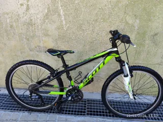 Bicicleta infantil de la marca Scott Scale, ideal para iniciarse en el ciclismo. - Cuadro de Aluminio ligero. - Suspensión delantera. - Cambio de marchas 21 Velocidades - Ruedas de 24 pulgadas. - Para 8-12 años Bicicleta niño niña infantil juvenil Scott trek Specialized Orbea Rockrider