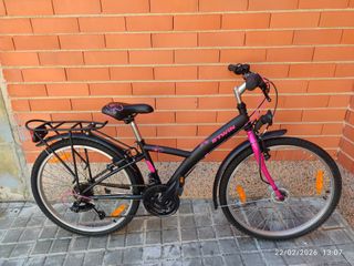 Bicicleta infantil niña 24" , ideal para 7 a 12 años aprox. La más alta de gama, Btwin Poply 540 - Color Negro y Rosa - Ruedas de 24" - Luz delantera y Trasera con Dinamo en buje delantero - Cambio marchas 21 Velocidades - Guardabarros, Caballete, Portaequipajes, Cubrecadena - Sillín Muy Cómodo - Manillar Regulable en altura - Bicicleta en muy buen estado Niño niña orbea specialized Scott Trek btwin rockrider expl 500 st