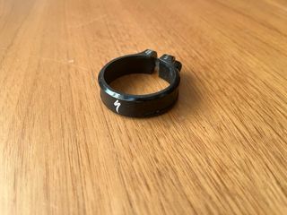 Abrazadera de sillín Specialized de 38,6 mm. - Color negro. - Logo de Specialized en blanco.