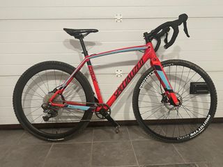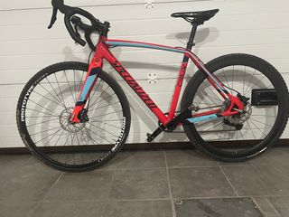 Bicicleta Specialized Crux de gravel en color rojo y azul. Talla S/M - Ruedas de 700c. Tubelizadas. - Rueda Carbono Roval perfil 40. - Frenos de disco. Hidraulicos. - Transmisión nueva, monoplato 32. - Cambio GRX 11 velocidades 11-42 Ideal niño ciclocross