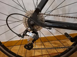 Es una bici ideal para principiantes o ciclistas que quieran una bicicleta solo para rodillo. Tiene alguna marca o roce de transportarla en el coche principalmente. Componentes: - Cuadro de carbono - Grupo Shimano 105 mecánico - Cassete 11-28 - Platos 53-39 - La cadena tiene 1500km realizados desde la última revision (febrero 2025) - Bielas 170mm - Ruedas Fulcrum Racing 7 de aluminio - Cubiertas Continental Grand Prix - Tija Oval con retroceso - Sillín Selle Italia No incluye: - Portabidones - Pedales - Adaptador Garmin