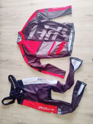 Equipación ciclismo Invierno en talla L con 3 usos reales. Esta nuevo, sin desgarros, enganches, etc... Todas las costuras están correctas y las bandas de silicona en los extremos están impecables. Vendo por cambio de marca de.la bici. Sirve para personas de 1.70m a 1.82m de altura. Chaqueta, decathlon, gobik, ASOS, Castelli, tour, assos, ropa ciclismo, equipación ciclismo, etc.