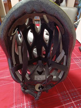 Casco de bicicleta Rockrider en buen estado. Es de color blanco con detalles negros. - Marca: Rockrider - Color: Blanco con detalles negros - Talla: (A determinar por el comprador) - Ideal para ciclismo