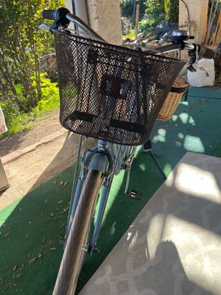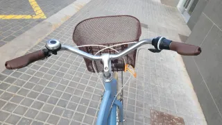 vendo bicicleta paseo talla M-L de color azul. tiene pie para dejarla apoyada, dinamo (luz delantera por friccion de ruedas) y alforjas de mimbre.