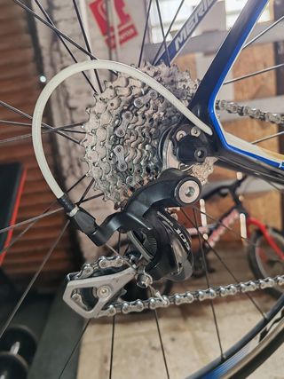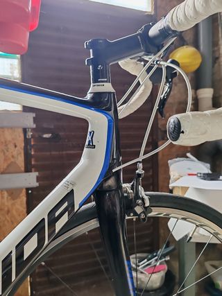 Merida escultura 904 en muy buen estado y con muy poco uso. Cuadro y horquilla de carbono con grupo shimano 105. Talla M/L y con 54cm entre el eje de pedalier y la tija. Cadena y piñones recién cambiados y los neumáticos són nuevos y de 28mm de ancho, cosa que la hace un poco más cómoda y tienen sólo una salida. Se vende por no usar casi nada. No se incluyen los pedales.