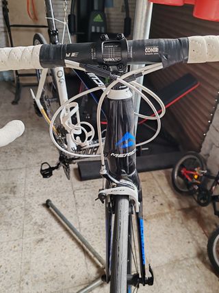 Bicicleta de carretera Megamo R10 en color blanco. Talla L - Cuadro de aluminio. - Ruedas de 700c. - Frenos de disco. - Transmisión Shimano. Se vende por falta de uso, está como nueva.