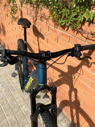 Bicicleta Orbea Oiz M30 carbono buen estado, tiene ralladas desgaste, de funcionamiento perfecto, recién revisada. ✅ Cuadro Oiz Carb talla L ✅ Ruedas Maxxis DT Swiss de alum ejes Boost ✅ Transmisión Shimano Deore XT 1x12 Cassette 10-51T Platos Shimano 32T Mandos y bielas Shimano Deore XT ✅ Suspensiones Horquilla Fox 32 SC Performance, 100 mm bloqueo remoto Amortiguador Fox Float Performance también bloqueo remoto ✅ Frenos Shimano Deore hidráulicos ✅ Tija telescópica Magura Vyron inalámbrica bluetooth ✅ Pedales Shimano SPD PD-EH500 mixtos una cara plana/una con fijación ✅ Manillar potencia tija de sillín Alum Siempre bien cuidada.