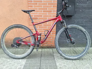 EN RESUMEN Peso: 13,9 kg (en talla L sin pedales) Material del cuadro: carbono Tipo: suspensión total Tamaño de las ruedas: 29" Recorrido de horquilla y amortiguador: 140 mm/ 130 mm Transmisión: 1x12 Frenos: hidráulicos Tija de sillín: telescópica Garantía cuadro, manillar y potencia: 5 años PESO 13,9: kg Peso neto sin pedales CUADRO Composición: carbono horstlink Recorrido: 130 mm Eje trasero: Boost 12X148 Tipo de eje: eje pasante atornillado hexagonal Caja del pedalier: Pressfit 92 Diámetro del tubo de sillín: 31,6 Fijación para portabidón: 1 Full internal routing TRANSMISIÓN SRAM NX EAGLE Monoplato: 32 dientes con antisalida