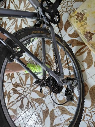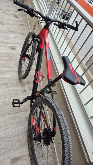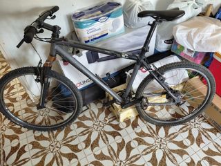 Una bicicleta perfecta para ir por la ciudad o caminos de arena como el Hondo. Tiene algunos rasguños en el cuadro, la horquilla y la palanca del freno pero nada que afecta a su funcionalidad. También hay oxidación en los frenos pero no en la parte donde frena, tampoco afecta a la funcionalidad. Le he cambiado el pedalier y el plato hace poco (€100), y las mejoras (~€90), va perfecto y está lista para rodar. Se vende con un solo portabidón. -Cuadro de aluminio -Horquilla 100mm -Ruedas 29 pulgadas -Puños AMS Rampage Cero (€32) -Guardabarros AMS (€17) -Pedales planos Rockrider 700 (€30) -Portabidon (€7) - Sillín (€25)